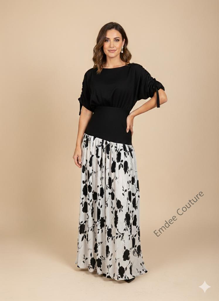Step into effortless glamour with this stunning mixed-media maxi dress, a highlight of the Emdee Couture collection. This piece is designed for the modern woman who values a silhouette that is as flattering as it is comfortable, offering a perfect balance of bold contrast and soft movement.